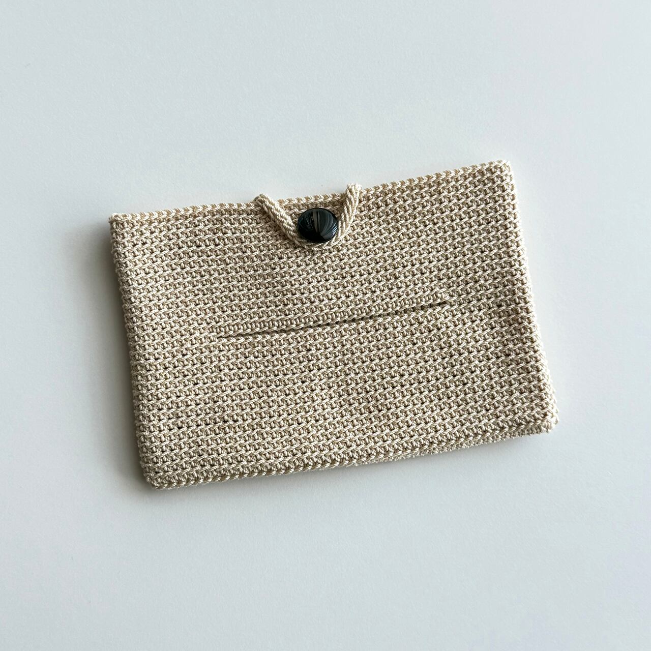 堅めの糸で編んだので、よれ難いです。